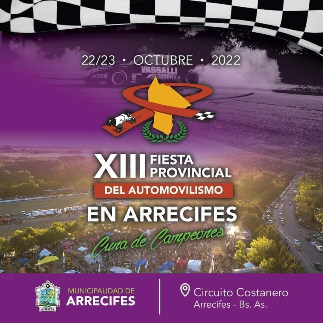 La 13ª Fiesta Provincial del Automovilismo ya está en marcha. Será los días sábado 22 y domingo 23 de octubre desde las 14:00 horas en el Circuito Costanero del Arrecifes Automóvil Club, con entrada libre y gratuita. Los números musicales estelares serán Javier Calamaro y La 2001.