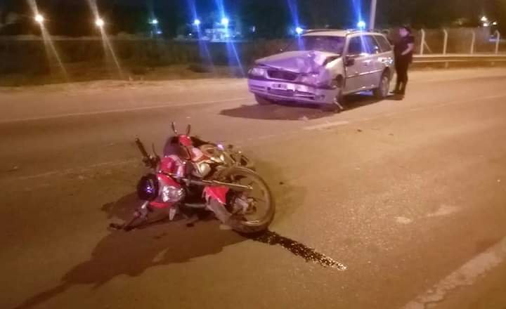 En la noche del domingo se produjo un grave accidente en Ruta Nacional N° 8 (Km. 175,5). Allí impactaron un automóvil VW Gol Country, de color gris, guiado por un hombre, y una motocicleta, marca Benelli modelo TNT 150 cc. de color rojo, guiada por otro hombre, ambos mayores de edad.