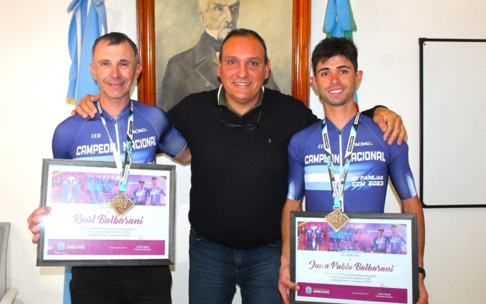 Raúl y Juampi Balbarani lograron el 1er puesto en el Campeonato Argentino XCM de 120 kilómetros, disputado en La Falda, hecho por el cual fueron distinguidos por el intendente Javier Olaeta en su despacho.