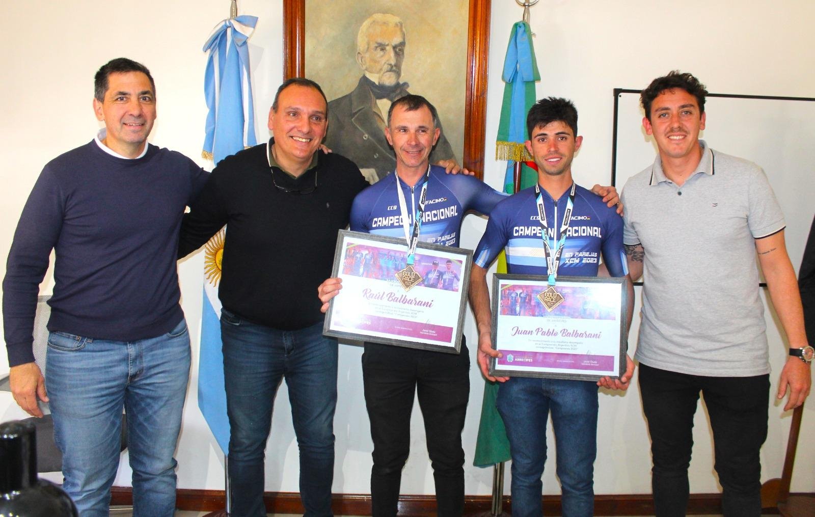 Raúl y Juampi Balbarani lograron el 1er puesto en el Campeonato Argentino XCM de 120 kilómetros, disputado en La Falda, hecho por el cual fueron distinguidos por el intendente Javier Olaeta en su despacho.