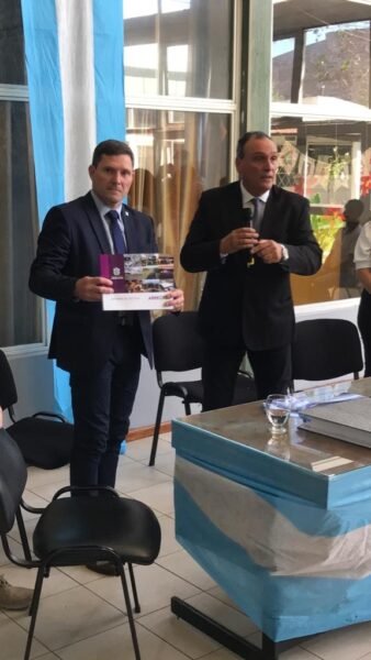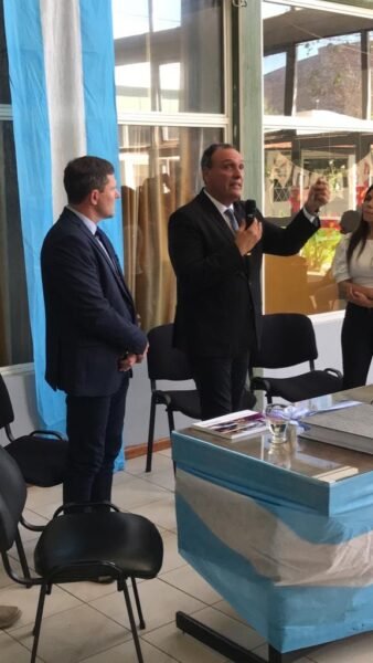 Tras la lectura del estado económico y financiero de la Comuna a cargo de la Contadora María de los Ángeles Peralta, y posterior firma de Olaeta y Bouvier, el intendente saliente hizo uso de la palabra repasando su gestión. En su alocución obsequió al nuevo intendente un libro con información sobre sus 8 años como intendente, las llaves del Palacio Municipal con un llavero con el logo del Frente de Todos por un lado y otro con el escudo radical, en alusión a las dos fuerzas que gobernaron Arrecifes tras el retorno de la democracia, hace 40 años. Por último, también entregó el escudo de la ciudad. (Vea el discurso haciendo click aqui)