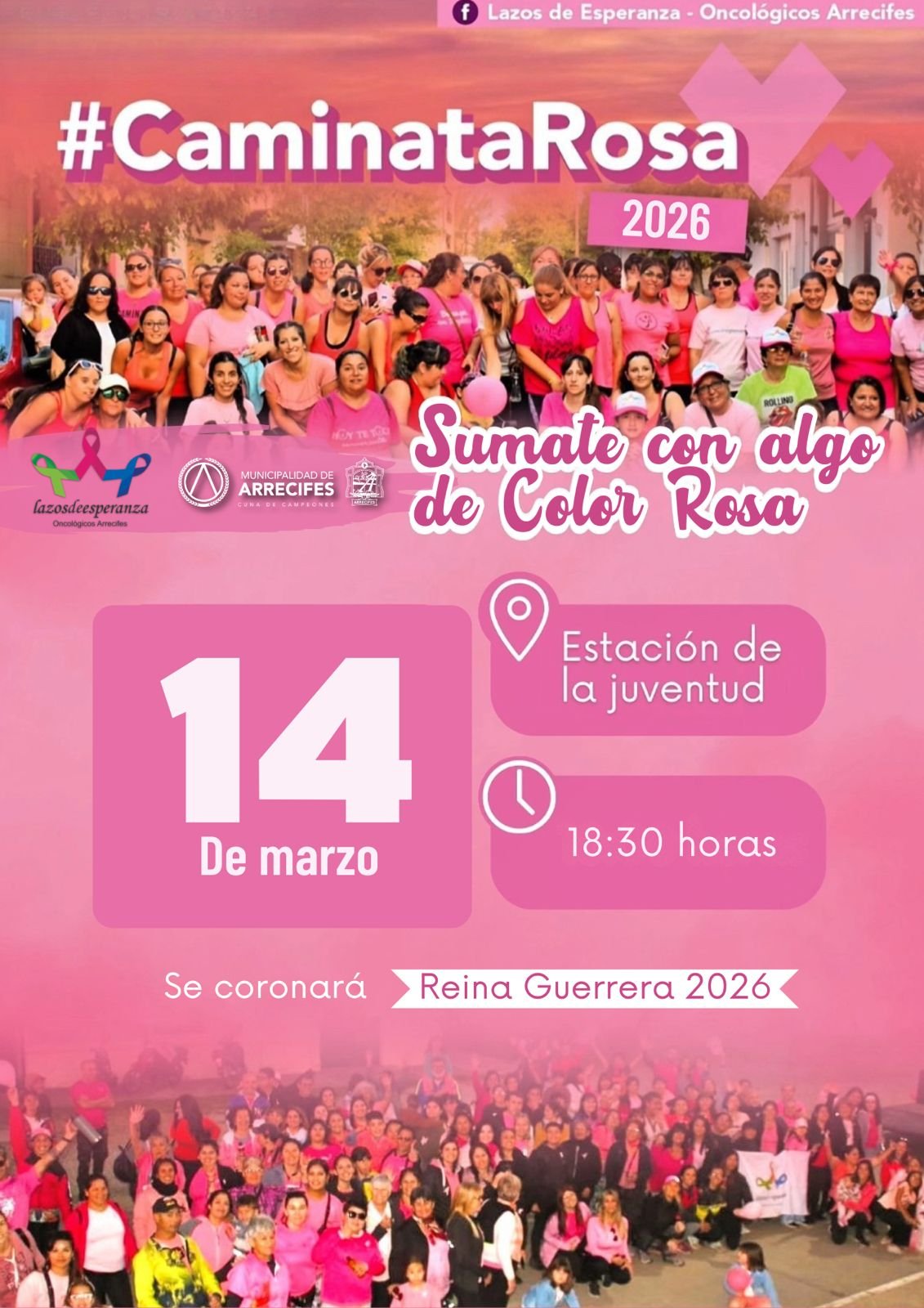 Nuestra ciudad se prepara para una nueva jornada de reflexión y compromiso. El próximo 14 de marzo, a partir de las 18:30, el Grupo Lazos de Esperanza – Oncológicos Arrecifes realizará la tradicional Caminata Rosa, una iniciativa que busca poner en agenda la importancia vital de la prevención y la detección temprana del cáncer.