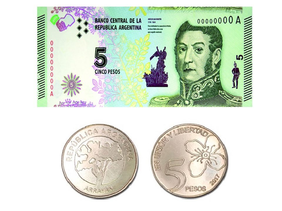 El Banco Central de la República Argentina (BCRA) anunció hoy que los billetes de 5 pesos saldrán de circulación en febrero de 2020. Serán reemplazados de forma definitiva por la moneda de igual denominación , de color plateada y que tiene como protagonista al arrayán.