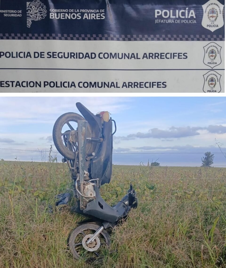 «En el lugar, una motocicleta marca Guerrero 110 cc., conducida por un hombre de 35 años, perdió el control, despistó e impactó contra el alambrado perimetral de un campo lindero.