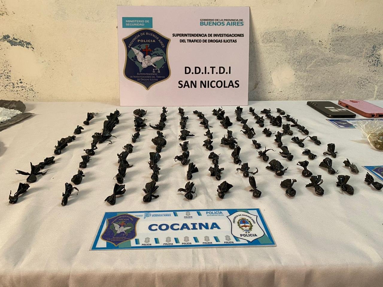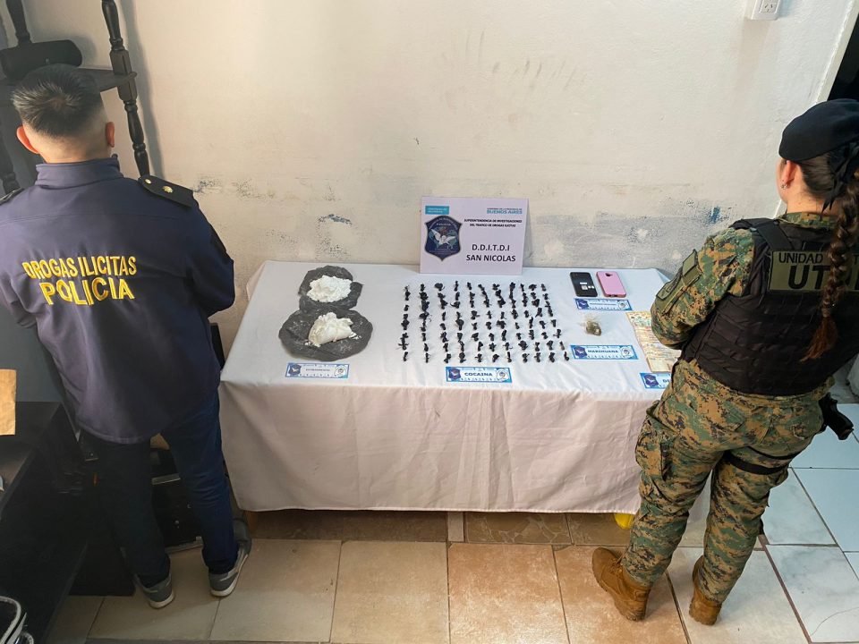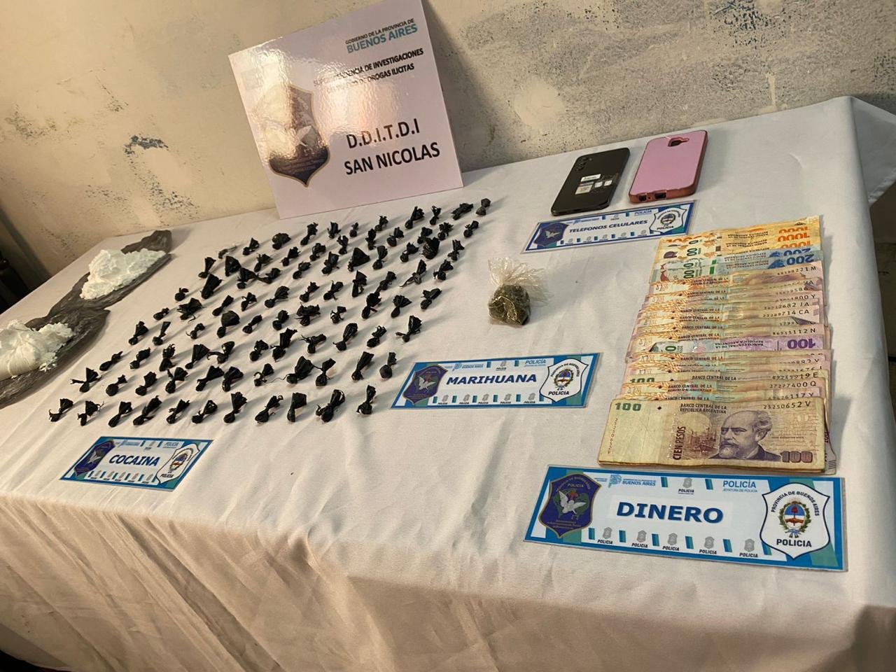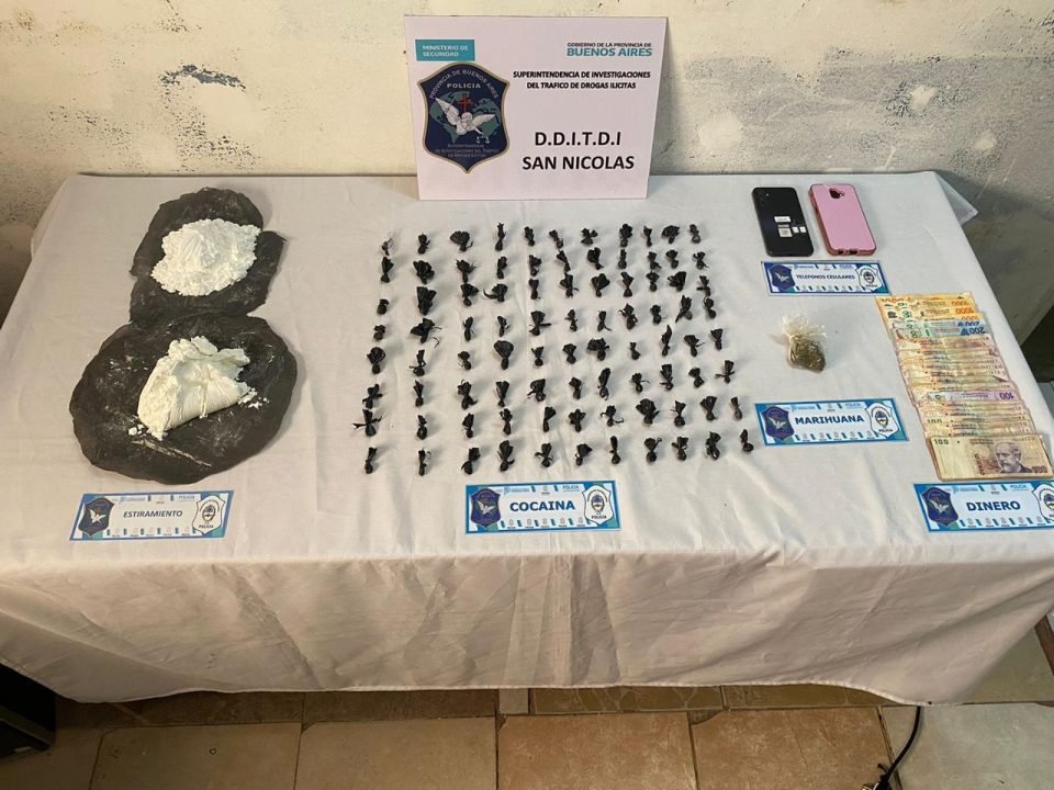 Los allanamientos se realizaron en avenida Molina al 50 y en calle Entre Ríos al 180. Se incautaron más de 80 dosis de cocaína fraccionada, teléfonos celulares, marihuana, dinero en efectivo y otros elementos relevantes para el caso. La droga secuestrada está valuada en casi medio millón de pesos.