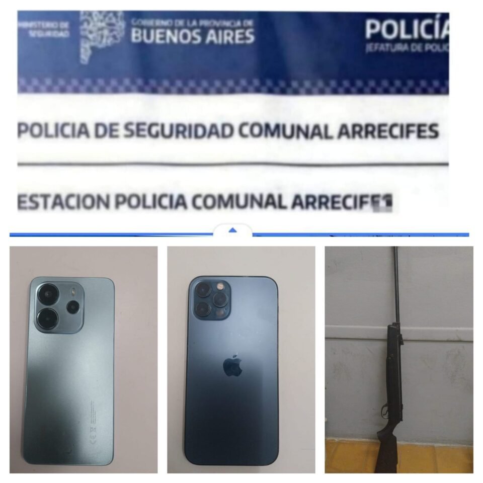 Con las pruebas sobre la mesa, se realizaron dos operativos en viviendas de nuestra ciudad. Los resultados confirmaron la seriedad del asunto: en una de las casas los efectivos encontraron un rifle de aire comprimido calibre 5.5 y un teléfono celular. En el otro domicilio se incautó un segundo dispositivo móvil.