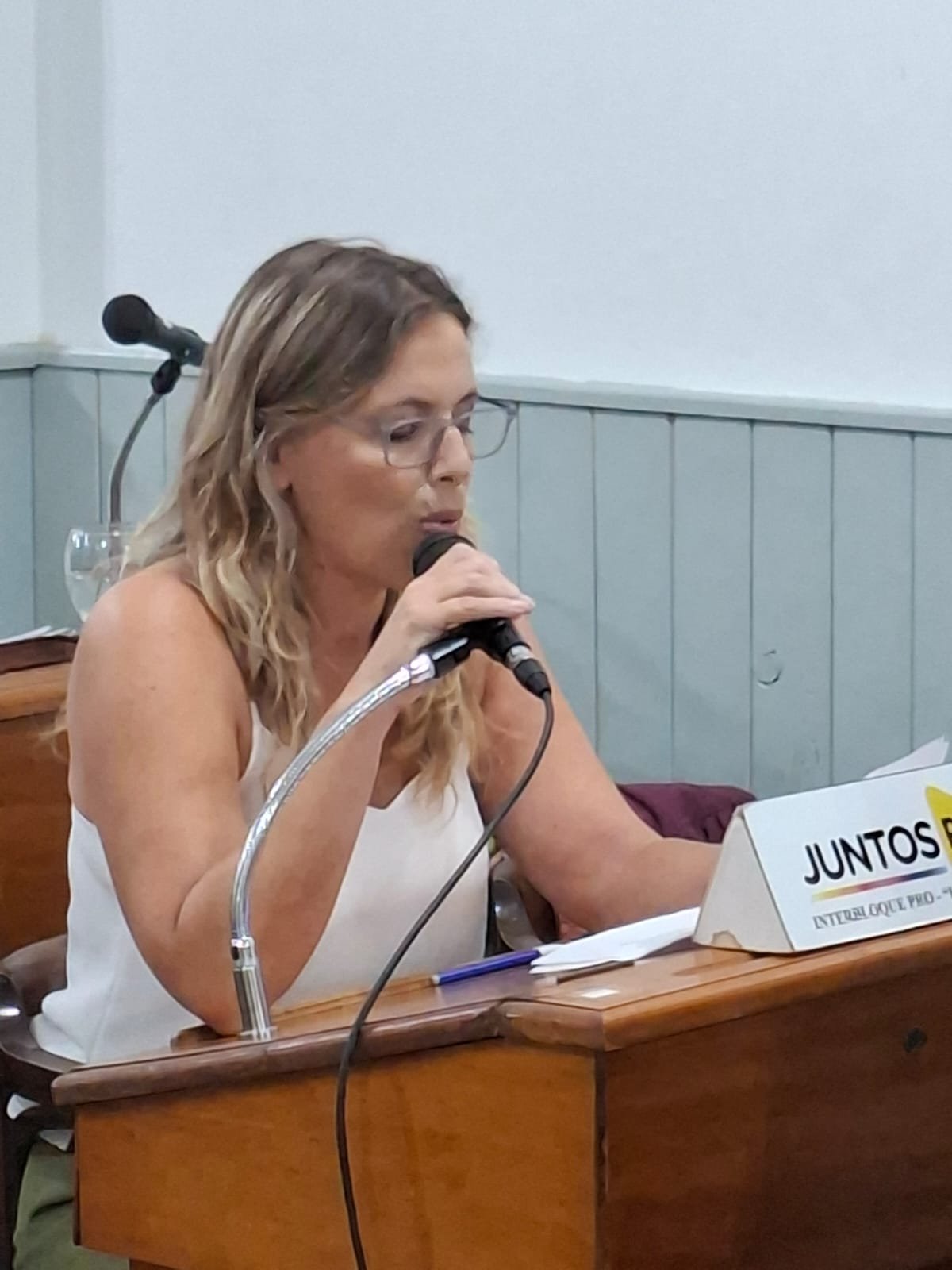 Evangelina Salgado, del Bloque oficialista Juntos PRO, reafirmó su compromiso de acompañamiento a la actual gestión, resaltando logros del Cuerpo, independientemente del bloque que lo llevó adelante, como la convalidación el convenio para la sala de hemodinamia, el nuevo metodo de tramitación de tasas, el desgravamiento de tierras improductivas o productores que trabajan su propia tierra. También resaltó «el acompañamiento del sector textil» con la suspensión del cobro de la tasa de seguridad e higiene., entre otros