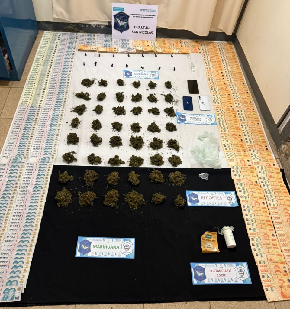 En el marco de una investigación por venta de drogas, la policía de la Delegación Departamental de Investigaciones del Tráfico de Drogas Ilícitas de San Nicolás realizó dos operativos en Arrecifes. De esta manera, dieron un fuerte golpe al narcotráfico de la zona.
