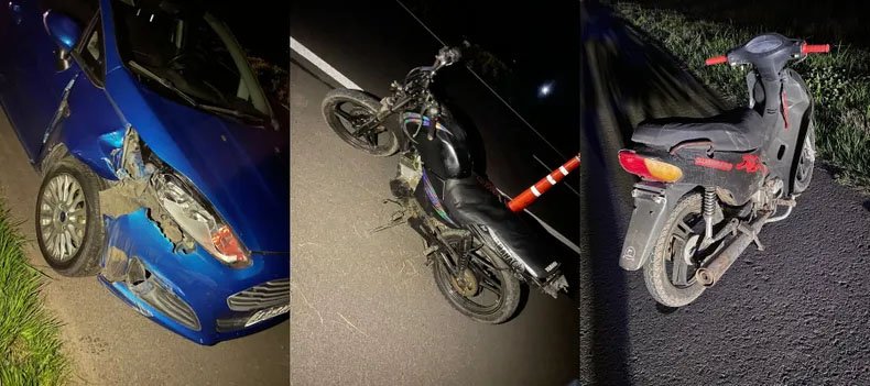 El hecho involucró a tres rodados: un automóvil Ford Fiesta y dos motocicletas, una Yamaha 125 y una Guerrero 110.