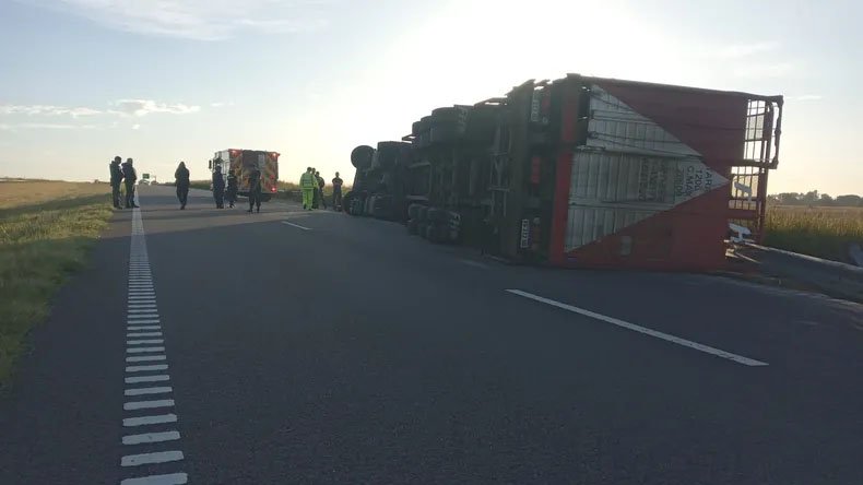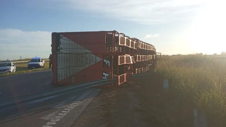 Un camionero murió este domingo en la Ruta 8, a la altura de Pergamino, tras el vuelco de un transporte de ganado bovino. La autopsia preliminar indica que habría sufrido un paro cardiorrespiratorio antes del siniestro vial. En el lugar, además, un centenar de personas faenó animales del acoplado jaula