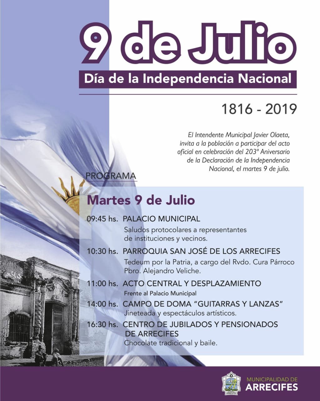 Desde la Municipalidad de Arrecifes se dio a conocer el Programa de Actos Oficiales que se realizarán en nuestra ciudad.