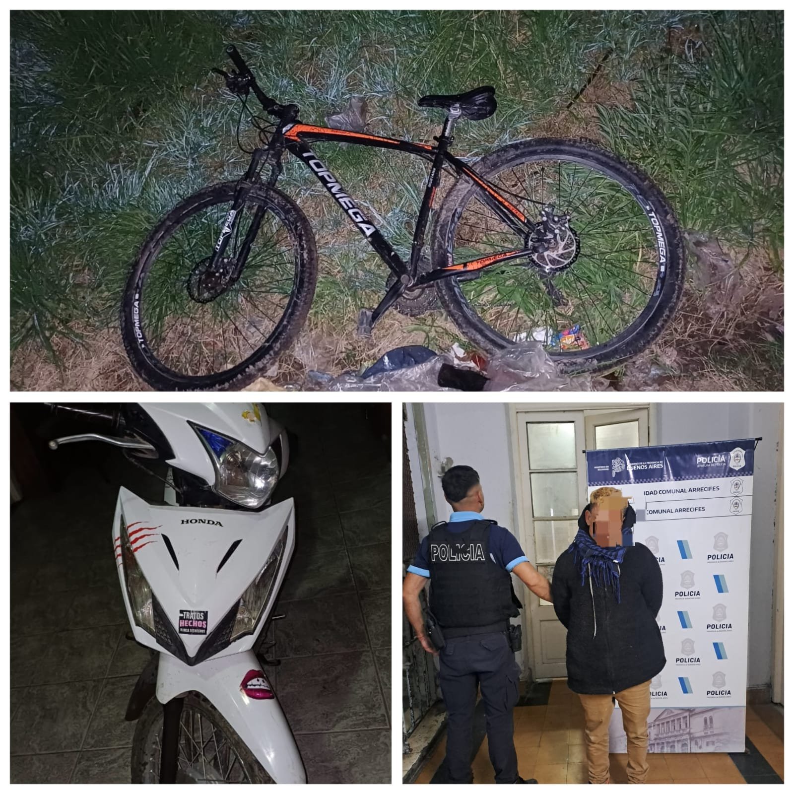 Gracias a la rápida acción de la policía de la Comisaría, ese mismo día se detuvo a un hombre de 34 años en la calle Rivadavia. El sujeto andaba en la moto que había sido denunciada como robada y, además, llevaba al hombro una bicicleta que coincidía con la descripción del otro vehículo sustraído.