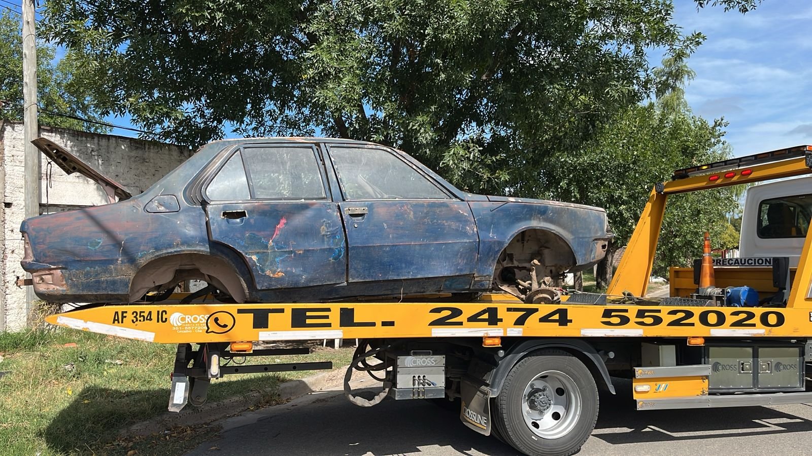 A raíz de una denuncia anónima, inspectores de la Dirección de Tránsito y la Patrulla Urbana se hicieron presentes en el barrio Parque La Cumbre, donde un vehículo en estado de abandono generaba preocupación entre los vecinos. Se trata de un Renault 18 de color azul que, según pudieron constatar los agentes, se encontraba prácticamente desmantelado.