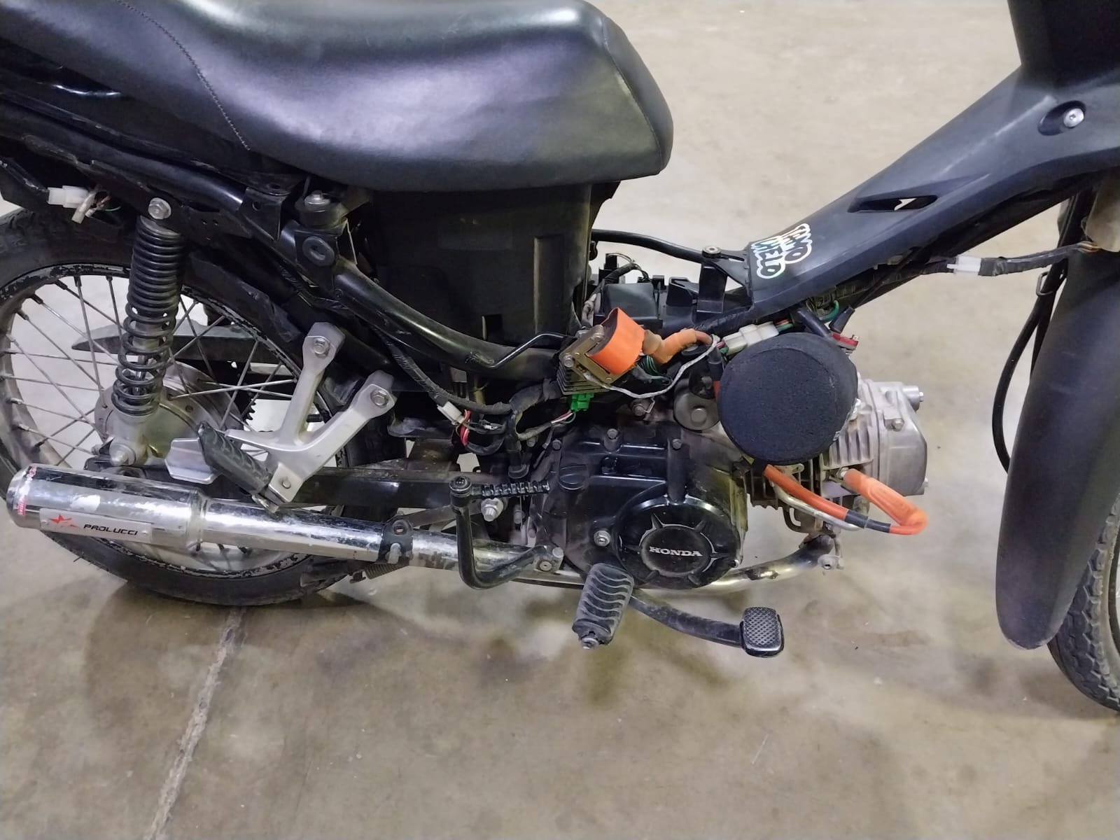 Al observar el estado del rodado, se advirtió además que presentaba varias modificaciones fuera de lo permitido, entre ellas un escape no reglamentario, un motor con adaptaciones asociadas a la competencia y un carenado plástico que cubría la parte inferior y los laterales.