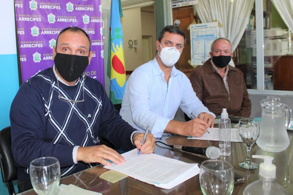 En los próximos días comenzará a funcionar la tarjeta SUBE en los micros locales de transporte público. Así fue anunciado hoy por la mañana en el Palacio Municipal, en una conferencia de prensa encabezada por el intendente Javier Olaeta representando a la Municipalidad de Arrecifes, y la presencia del subsecretario de Transporte de la Provincia Buenos Aires, licenciado Alejo Supply representante de Ministerio de Infraestructura y Servicios Públicos bonaerense. Ante los medios de prensa locales firmaron el convenio para la implementación en Arrecifes del Sistema Único de Boleto de Electrónico (tarjeta SUBE), participando como invitado el diputado provincial Marcos Di Palma.