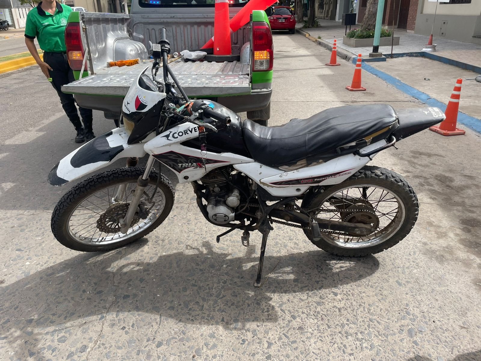 Se trata de una Corven Triax blanca y negra que, según el reporte oficial, se encontraba en regular estado y con las llaves puestas a un costado de la cerradura de encendido. Ante el desconocimiento general sobre quién podría ser el dueño y con el objetivo de evitar que sea robada, los inspectores decidieron retirarla de la calle. Tras una consulta con la policía, se confirmó que el vehículo no tenía pedido de captura vigente.