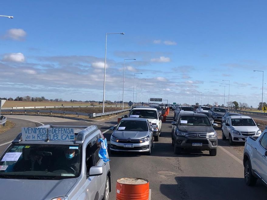 Decenas de productores autoconvocados del norte bonaerense se juntaron en la intersección de las rutas 188 y 8, en Pergamino, para protestar contra el Gobierno. Lo hicieron porque iba ir el presidente Alberto Fernández para la inauguración de un tramo y circunvalación de la autopista Pilar-Pergamino. En camionetas y autos, más de 500 personas se hicieron presentes dese las 10 de la mañana en la intersección de la ruta 188 y la autopista, donde no solo se acercó gente de campo sino también comerciantes y familias “para pedir que se termine con el avasallamiento de la República”.