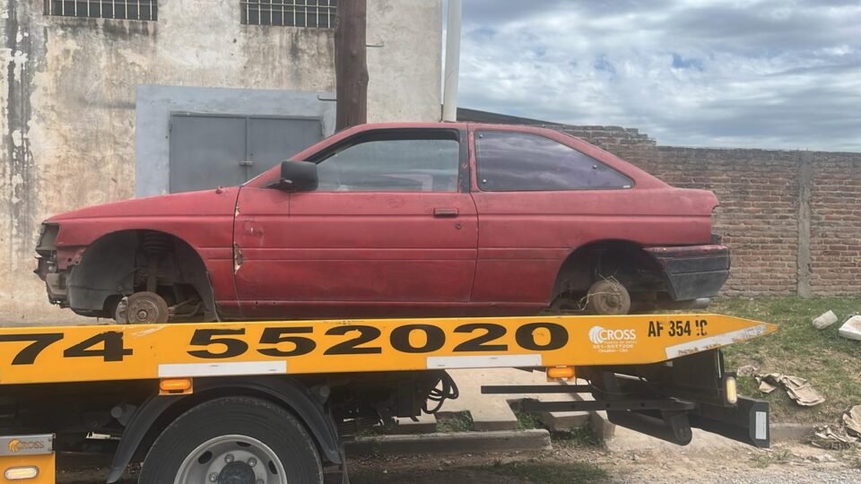 A las 14.20, en Moreno entre La Rioja y Chaco, se procedió a la retención de un automóvil Ford Escort rojo, que se encontraba en estado de abandono y sin sus cuatro ruedas. El propietario se hizo presente en el lugar y no se opuso a la medida, firmando el acta correspondiente. La infracción se encuadra en el artículo 72 de la Ley Nacional de Tránsito N.º 24.449.