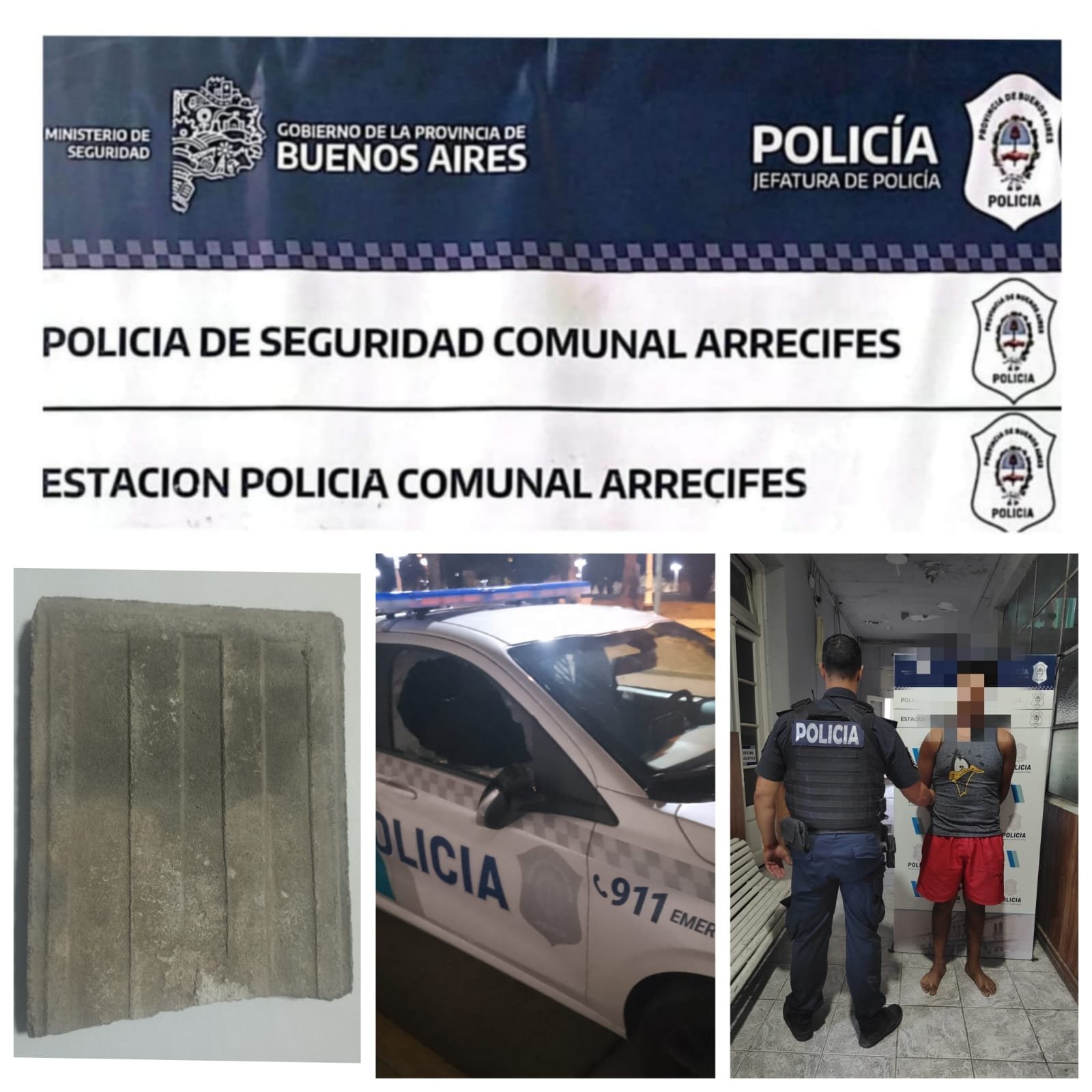 Al momento de ser capturado, los efectivos le realizaron una requisa y descubrieron que llevaba consigo un segundo trozo de baldosa, similar al que ya había utilizado para atacar el vehículo.