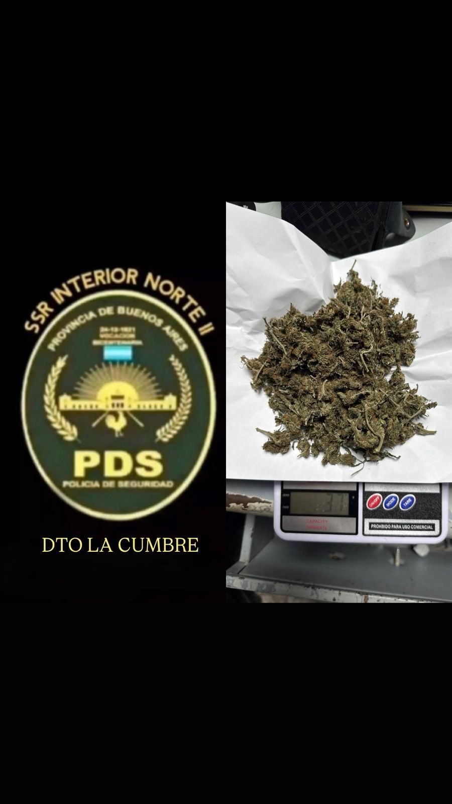 La actividad preventiva no se detuvo ahí. Un día antes, durante un control de tránsito enfocado en motocicletas, un joven de 20 años fue frenado por las autoridades. No solo llevaba consigo 19,2 gramos de la misma sustancia, sino que además circulaba en una moto que no tenía ningún tipo de documentación, por lo que el vehículo fue retirado de circulación.